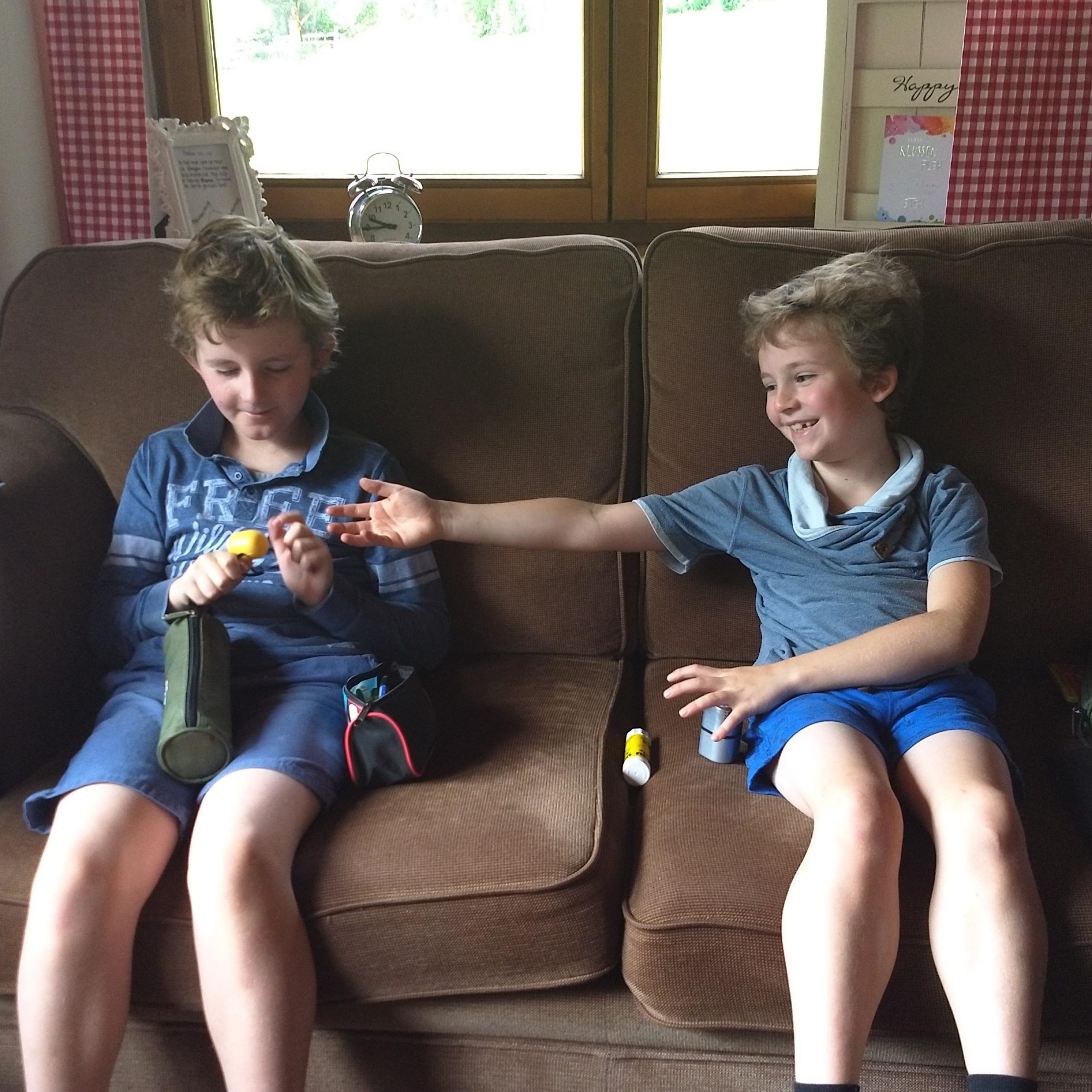 We hebben onze eerste ‘echte gasten’ gehad. Zo noemen we ze en dat is natuurlijk een verkeerde benaming. In de meivakantie hadden we namelijk ook al gasten. Die noemden we onze ‘proefgasten’, maar ze waren net zo ‘echt’ als onze ‘echte gasten’. Benjamin is een handelaar in de dop en ziet overal