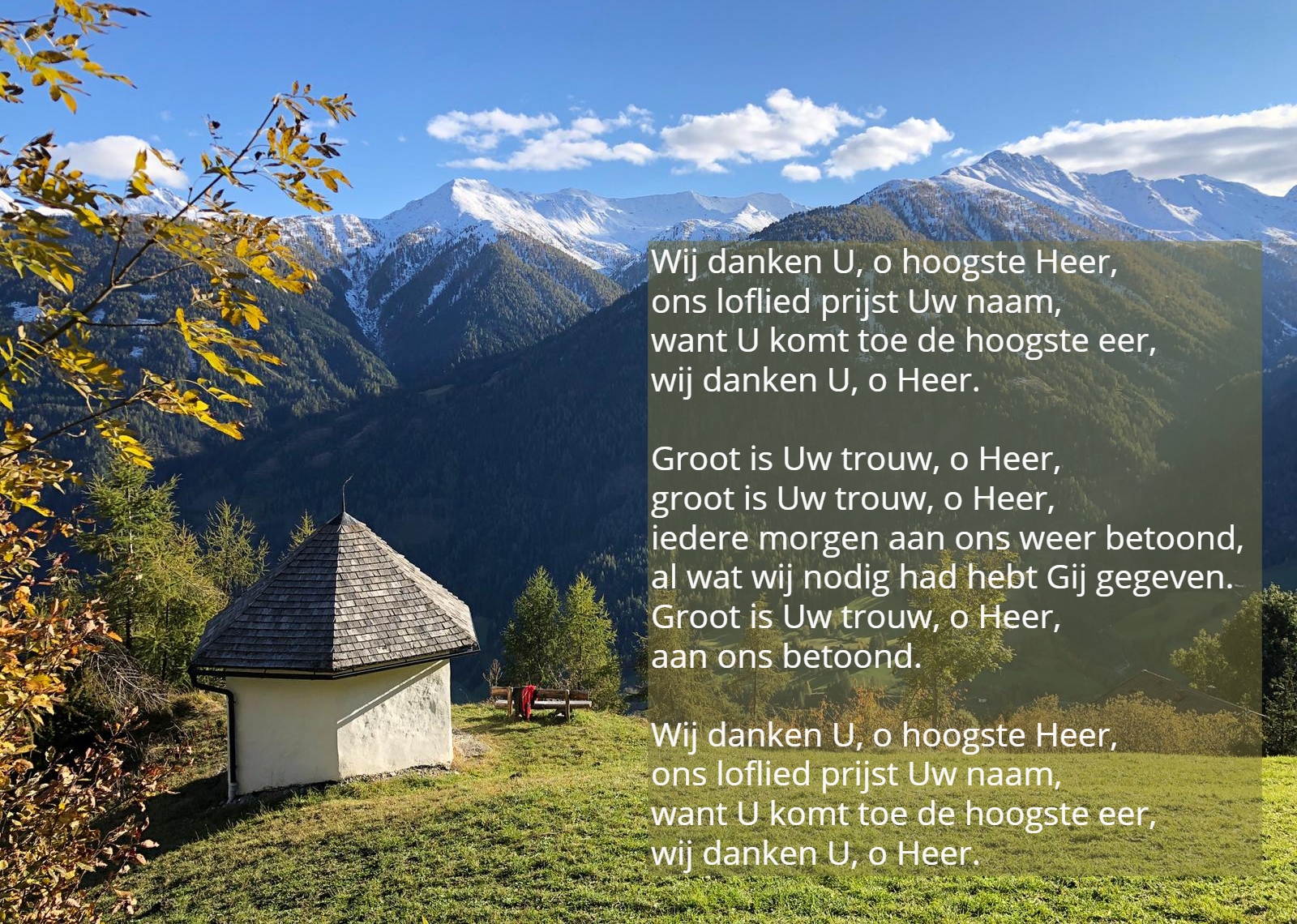 “Erntedank ist eine traditionelle Feier der Christen nach der Ernte im Herbst, um Gott für die Gaben der Ernte Dank zu erweisen.” Hier in Matrei was er eind september een optocht met versierde karren met oogst erop. Zo wordt hier dankdag gevierd. En zo kijken wij nu ook naar ‘onze’
